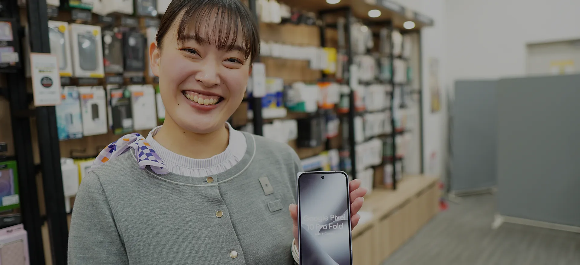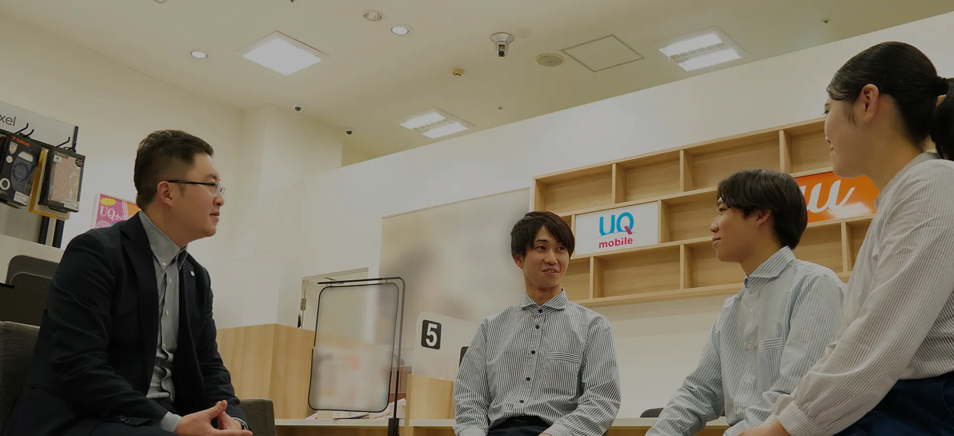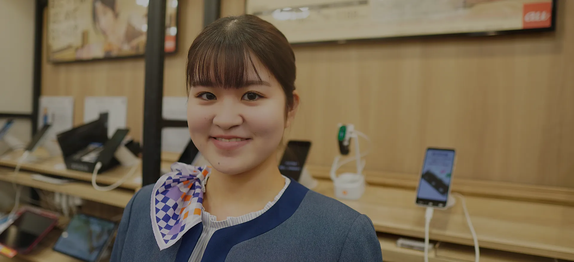 携帯電話の販売やアフターサポートをはじめ、店舗での接客や提案を通じて、お客さま一人ひとりの「安心」と「快適」に寄り添うことを大切にしています。